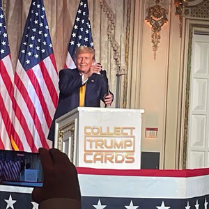 特朗普在加密货币的一个领域表现出或多或少的专业性:他的 NFT。特朗普 NFT 的三套系列——描绘了不同爱国主义状态下的超级唐纳德的数字交易卡——已经产生了数百万美元的销售额。周三的晚宴庆祝了购买了他的“Mugshot Edition”第三系列的大户。