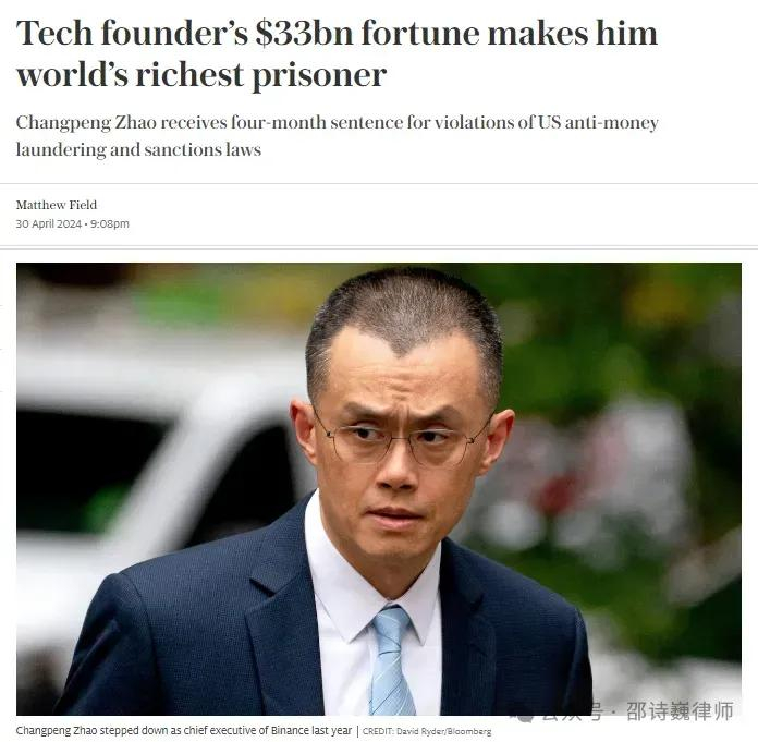 2024年4月30日,美国西雅图联邦法院以未能防止交易所洗钱为由,对赵长鹏判处4个月监禁。