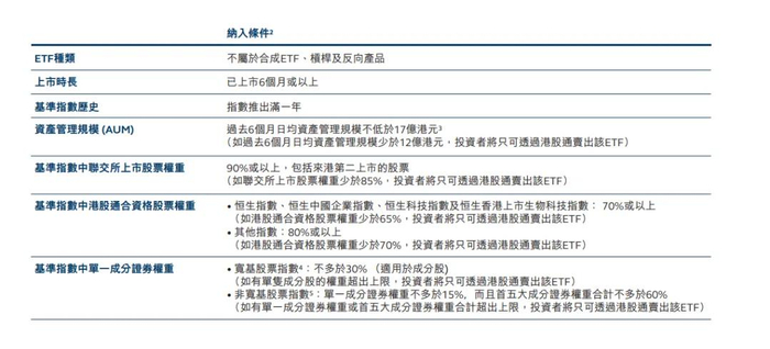 简而言之,股票互联互通计划是中国内地资本市场对外开放的重要举措,话虽如此,内地资本市场对外开放一向摸着石头过河,所以可以想见,股票互联互通计划里可交易的标的都有着严格条件。比如股票,通常需要是两地主要指数的成份股,并且满足一定的市值、流动性等标准。