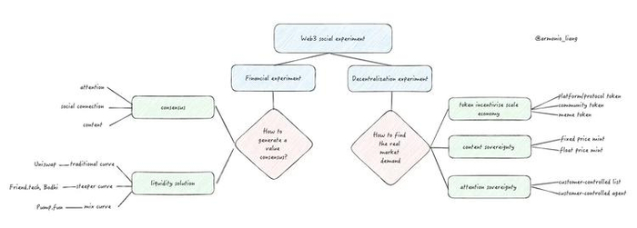 Web3 社交的另一条进化路线就是利用社交进行发币。对项目来说,币是一种融资手段。而对于用户来说,币未必不是一种产品。 币是一种金融产品。发币本身是很容易的事情,困难的是如何让市场建立代币的价值共识,如何让代币具有流动性。