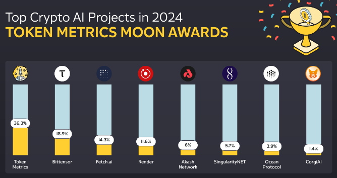 在Moon Awards调查中,Token Metrics以36.3%的总票数获得了第一名。