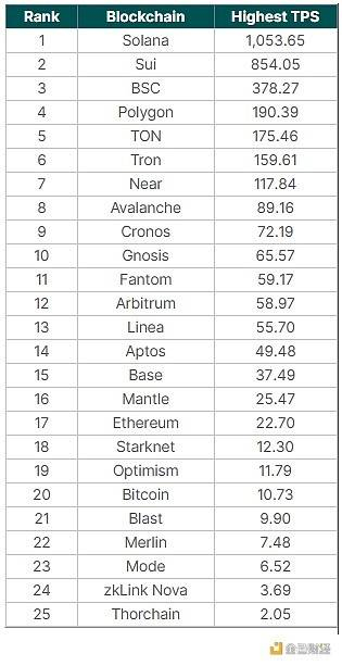 最大的区块链,根据达到的历史最高日平均 TPS 从最快到最慢排名: