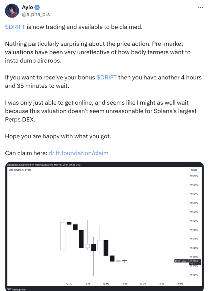 近期,不少项目在牛市中完成空投。虽然这些代币在发行后最初价值飙升,但趋势是它们立即抛售,因为用户将其出售以获得更安全的资产。这进一步强化了积分只是风险较高资产的收益率的想法。它还加剧了一个问题,即这些代币在大规模风险投资的支持下以数十亿美元的估值发行,当一个代币已经发行到接近其公允价值甚至被高估时,散户投资者就没有获利的空间,因此,围绕代币的真正社区也无处可寻。