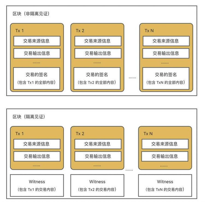 在上面的介绍可以知道目前较新的钱包格式都是采用了隔离见证技术,那么什么是见证(Witness),它是怎么进行隔离的呢。