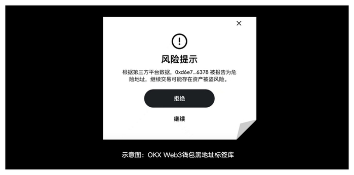 1)黑地址标签库:OKX Web3钱包建立了丰富的黑地址标签库,防止用户与已知的恶意地址进行交互。该标签库持续更新,以应对不断变化的安全威胁,确保用户资产的安全。