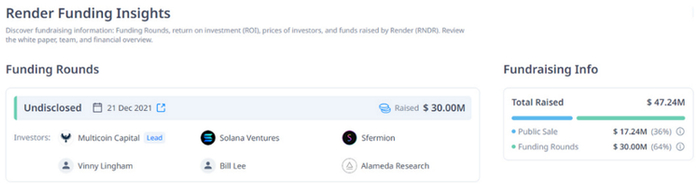 Render Network由专业的渲染和计算机图形公司OTOY首席执行官Jules Urbach于2017年创立,该项目已通过公开发售和融资轮次筹集了超4700万美元。投资者包括Multicoin Capital、Solana Ventures和Sfermion。
