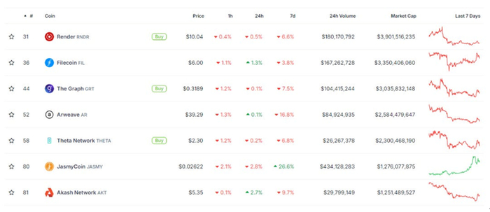 Render在AI和DePIN等各种叙事中扮演着重要角色。其主要竞争对手是: