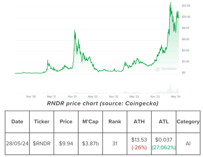 利用向Solana的过渡和不断扩大的AI泡沫,RNDR在过去一年中增长了300%,这种增长可能只是一个开始。