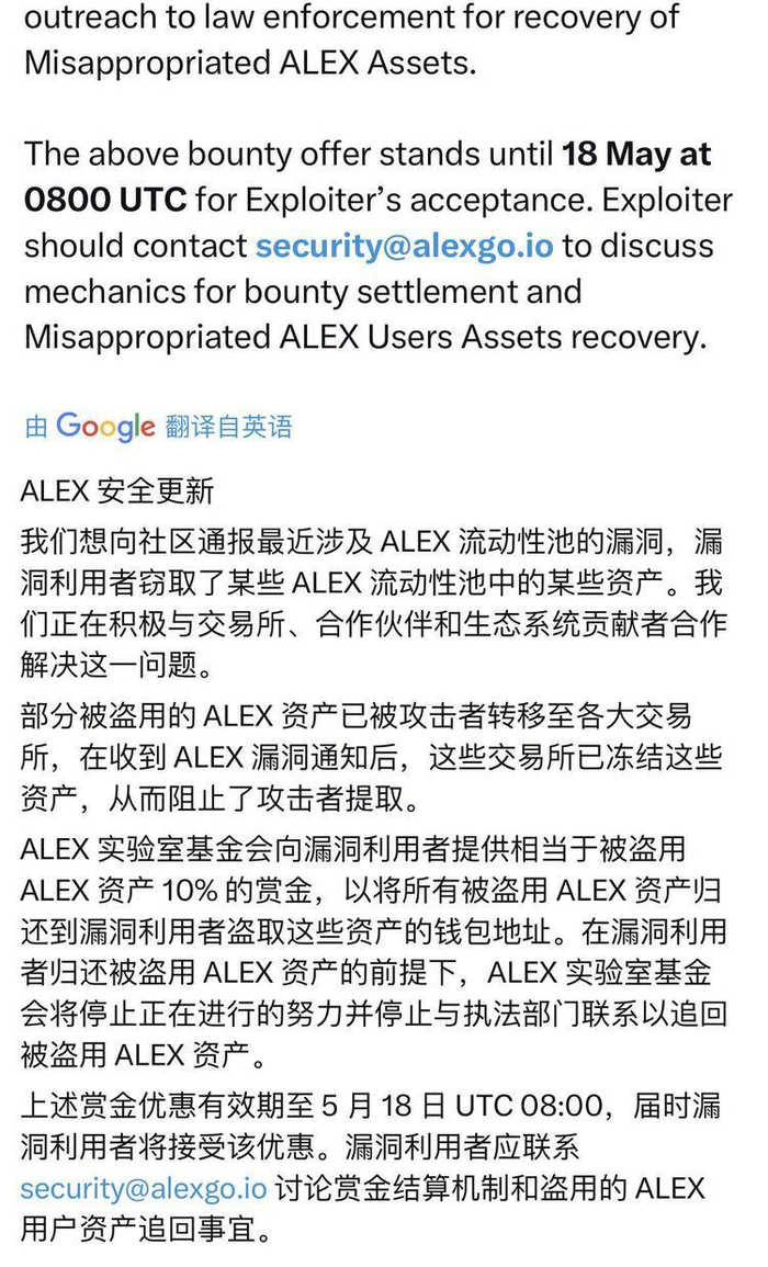 (6) 5月15日,比特币DeFi工具Alex Lab因私钥被盗在Stacks和BSC两条链上共损失约630万美元。