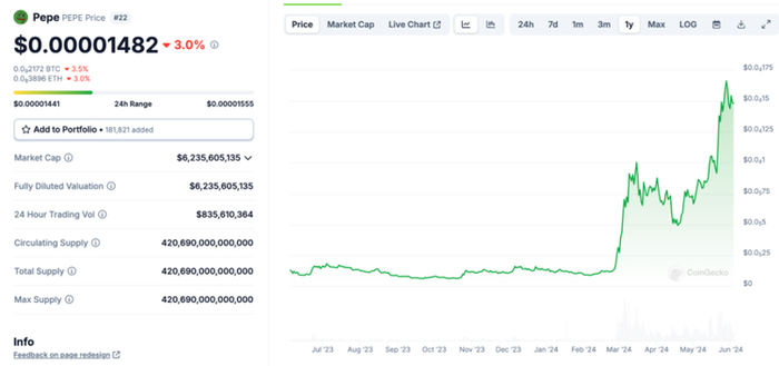 Pepe 是目前 holders 数量排名第四的 meme coin,仅次于 DOGE, SHIB, MEME,自今年 5 月 holders 人数首次突破 100k 以来,Pepe 的价格进入了良好的上升区间。