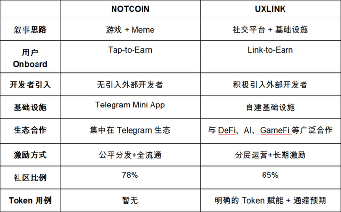 首先总结 NOTCOIN 和 UXLINK 在 Mass Adoption 方法论上的差异。