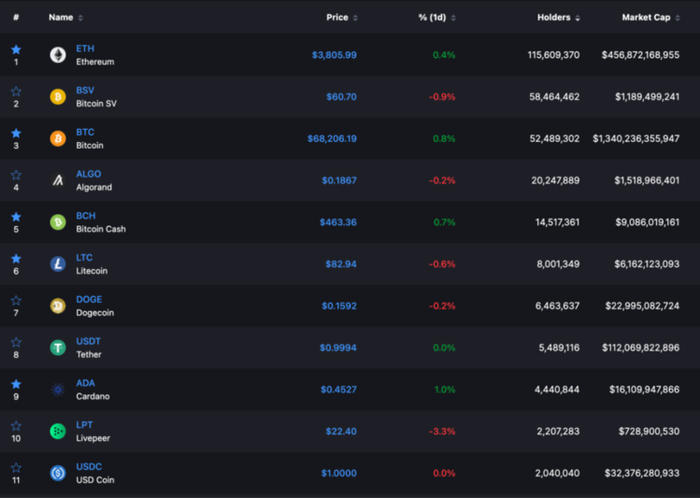 https://bitscreener.com/Top-Cryptos-With-Most-Holders?t=overview&p=1