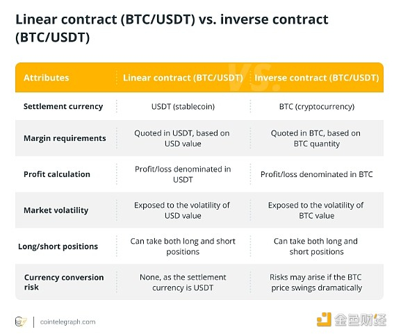 线性期货合约和反向期货合约的比较: