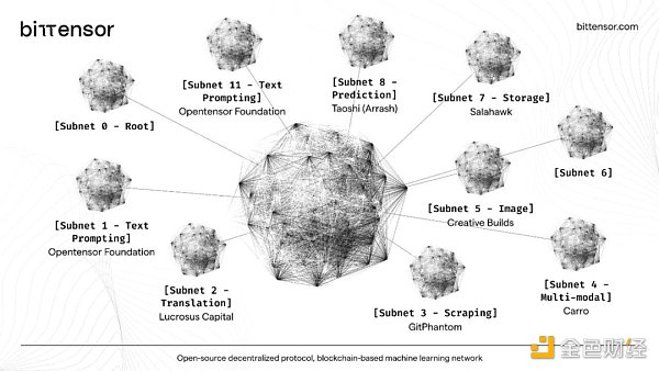 去中心化 AI:将 AI 模型部署到区块链网络上可以实现去中心化的人工智能服务,这种方式提高了系统的可靠性和稳定性,降低了单点故障的风险。目前,代表此方向的项目有 Bittensor。