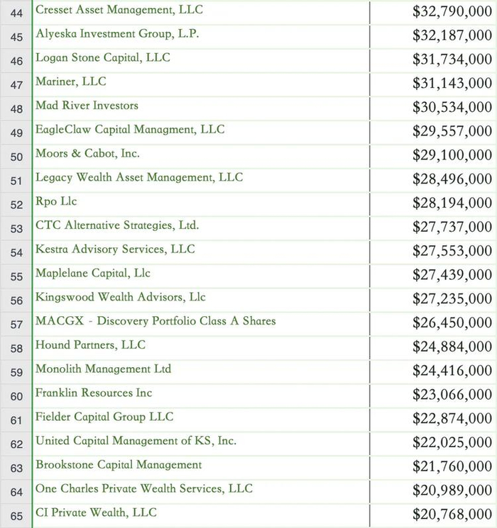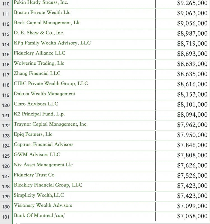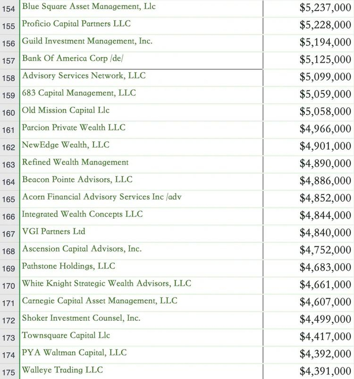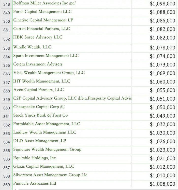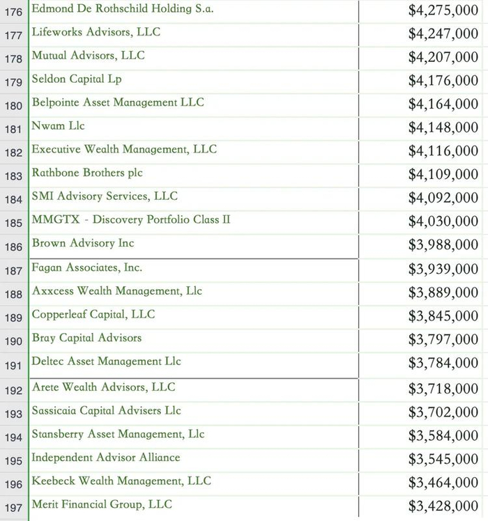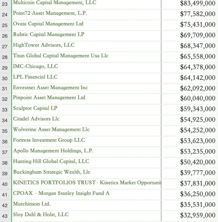 现货 BTC ETF 购买者名单(投资金额超过 100 万美元)