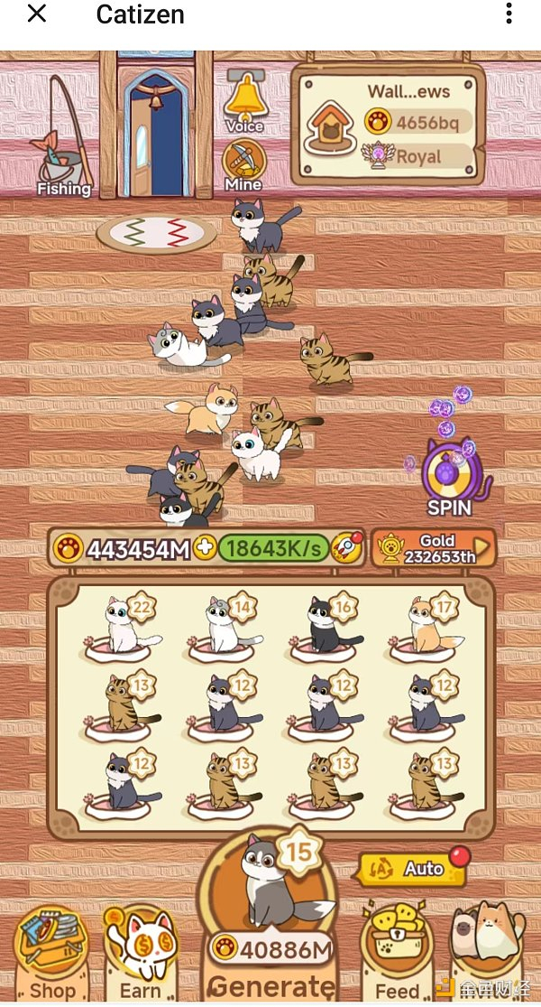 游戏上手没有什么上手难度,游戏背景是在猫咖,用户为猫咖的运营者,而用户在游戏中的主线任务便是合成猫咪使其不断升级赚取金币,挖矿。合成猫咪的游戏体验和消消乐类似,简单。魔像,容易上瘾,再加上空投预期,会让许多人欲罢不能。