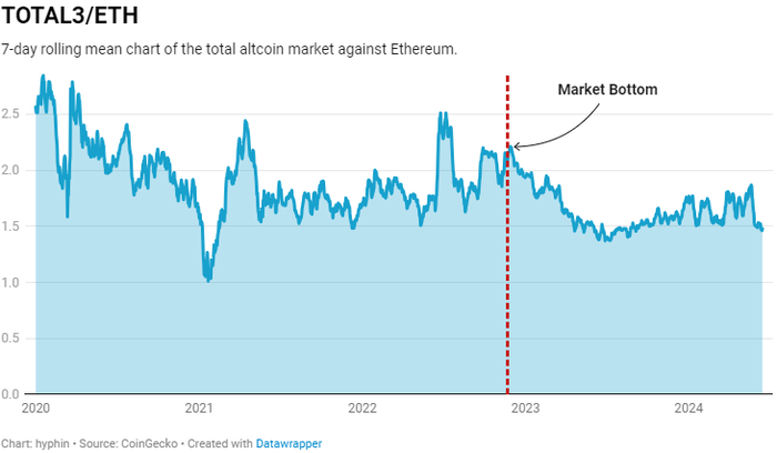 尽管以太坊因其平淡的价格走势而受到嘲笑,但它仍然设法保持领先地位。除了 memecoin 或任何以稳定币计价的东西之外,将自己定位于链上生态系统代币的投机者已经在炼狱中度过了愉快的时光。我们向那些爱上 ETH beta 孩子的人们致以最诚挚的贡献。
