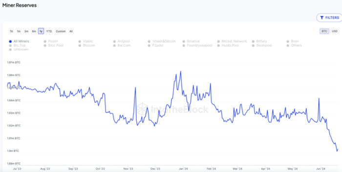 算力下降的同时,矿工群体近期也在加大抛售力度,成为市场最大的卖压之一。IntoTheBlock 数据显示,比特币矿工2024年以来累计出售超5万枚比特币,矿工持有的比特币储备逐步降至有史以来的最低水平。与此前周期中矿工的过度杠杆和长期持有倾向相比,如今矿工更关注短期收益。这可能是由于随着算力重构,众多上市公司成为了推动挖矿产业规模化和主流化发展的重要动力有关。