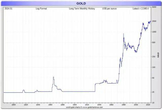 以史为鉴,让我们来看一看过去100年黄金的走势图,你会发现比特币这个数字黄金和黄金除了一些属性类似之外,在走势图上都有很多相似之处: