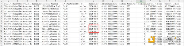 那么我们现在可以列出当时“德国政府”的转账卖出记录进行对比,以此就可以分析出两者是否具体时间节点上的强关联性。
