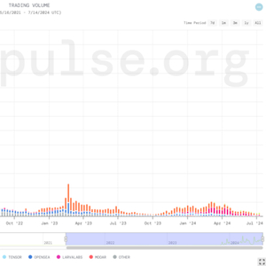 NFT 市场周平均交易量 (source:nftpulse)