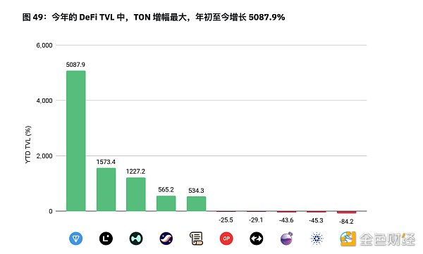 聚焦变化最显著的净 TVL,The Open Network (“TON”) 自年初至今实现最大的增⻓,这是由其不断扩大的原生 DeFi 去中心化应用程序 (“DApp”) 推动的。其他增⻓最显著的链包括 L2 和其他专用应用链,如 Hyperliquid 的 L1。另一方面,尽管从百分比变化看变动较小,但 Manta Pacific 在其新范式活动结束后,出现了最大的资金流出量。
