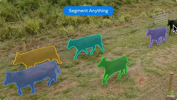 扎克伯格:好的,嗯,这里面有很多值得探讨的内容。你所谈论的那个Segment Everything模型,我们实际上在SIGGRAPH上展示了它的下一个版本,Segment Everything 2。现在它已经能正常运行了,速度更快了。它现在也能处理视频了。我觉得这些实际上是我考艾岛牧场的牛。顺便说一下,它们被称为马克的小牛,美味的小牛。