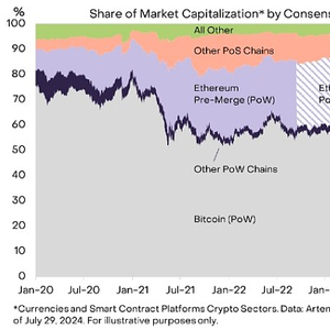 尽管比特币仍然是按市值计算最大的公共区块链,但 PoS 网络已经越来越受欢迎。例如,我们的货币加密板块和智能合约平台加密板块中超过一半的协议都使用了 PoS 共识机制。按市值计算,基于 PoS 的区块链约占这些加密板块总市值的 30%,占除比特币以外的市值的 90%(图表 1)。