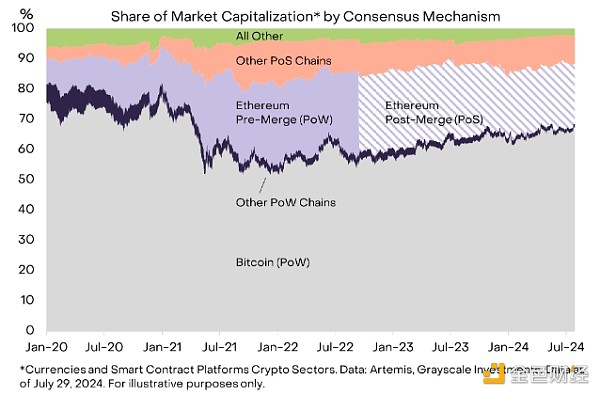 图 1:除比特币外,PoS 现在是主流共识机制