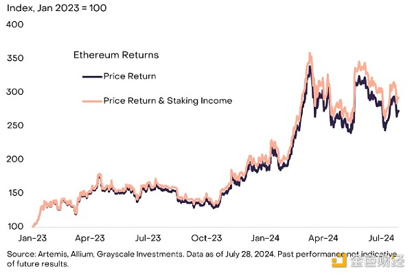 [9] 来源:Allium,Grayscale Investments。截至 2024 年 7 月 28 日的数据。自 2023 年 1 月 1 日以来的年化质押回报率的简单平均值。