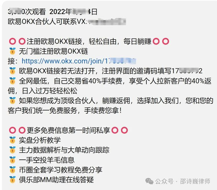 尽管币圈用户知道国内政策对虚拟货币交易抱有负面态度,但也知道国内未禁止个人投资、交易虚拟货币,并且也认可虚拟货币作为虚拟商品的价值。那具体到实操中来看,很多人为赚取返佣在社交平台或社群中放置自己的拉新邀请链接、撸空投、炒币、玩合约等,大家都在玩,总感觉好像应该没事?但有时又隐隐的担心,所以会来问律师。