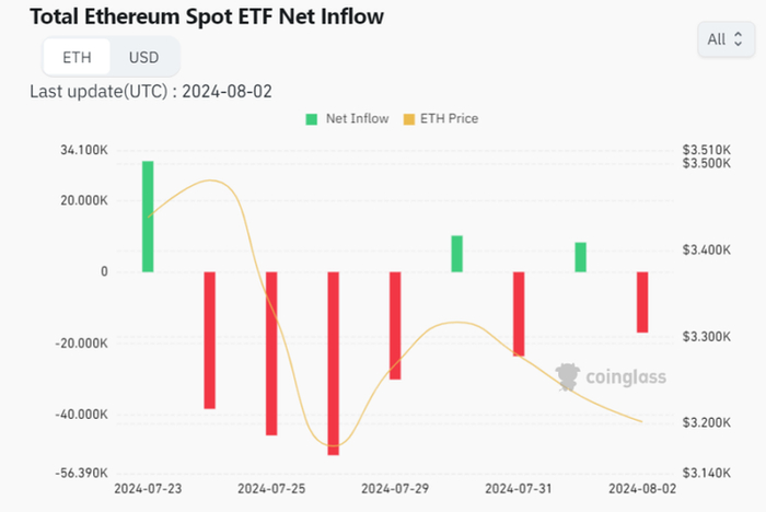 反观ETH现货ETF净流入数据,由于推出的时间点正好遇到宏观经济环境动荡、美股等风险市场大幅回落的不利局面,因此目前累计净流入-5.11亿美元,总资产市值规模相比BTC也比较小。其中,Grayscale 的ETHE占了大部分流出量,价值超过 21 亿美元,而其他 ETF 发行商均处于净流入状态。由于Grayscales ETHE仍持有价值超过 59.7 亿美元的ETH,未来几周有可能会进一步流出。