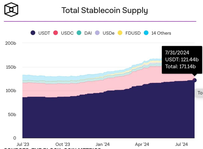 USDT 占据稳定币市场 70% 份额