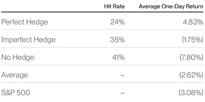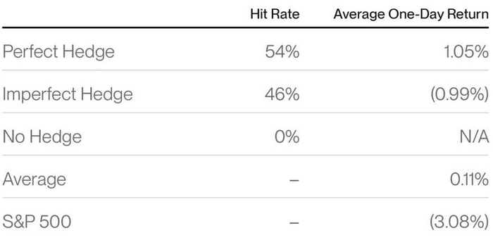 - 部分对冲:该资产产生负回报,但表现优于标准普尔 500 指数;