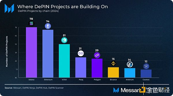 目前,Solana 托管了最多的 DePIN 项目,为开发人员提供了独特的技术福利。Solana 为网络架构提供了多种代币标准,如 cNFT(压缩 NFT)、pNFT(可编程 NFT)和代币扩展。随着 DePIN 实验的继续,Solana 提供了独特的工具来开发高效的资源网络,为区块链创建新的资源共享结构以增强和实现。