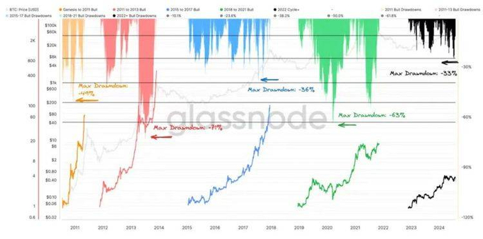 Animoca Digital Research :我们认为加密货币市场截至 2024 年 8 月依然处于牛市周期。尽管全球资产市场近期出现了一些波动,但中期前景依然乐观。与之前的周期对比,当前周期尚未到达峰值。近期约 30% 的修正完全在历史范围内,符合牛市调整的常规模式。