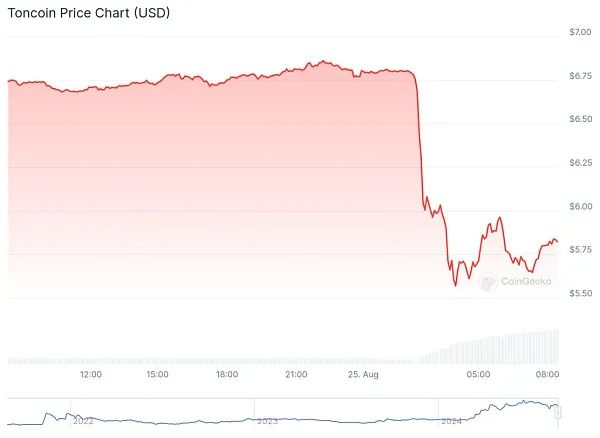 由于杜罗夫被捕,对Telegram及其加密货币项目潜在监管合规性的担忧激增,投资者大幅抛售持有的相关代币。
