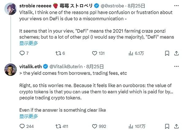 8月25日,KOL@0xstrobe对Vitalik发出了质疑,公开指责他在 DeFi 话题上沟通不畅。原文内容为:
