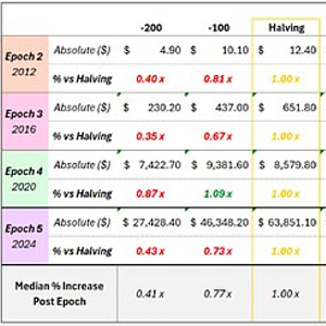 图 5:每次减半前200天的BTC价格表现