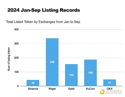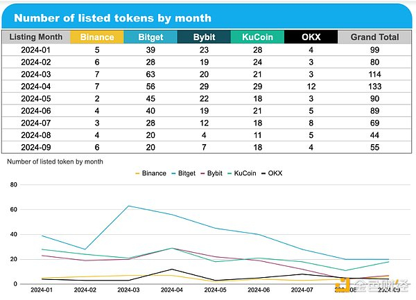 币安和OKX在主流交易所中更具选择性,今年迄今分别只上线了44和47个代币。