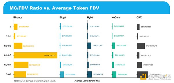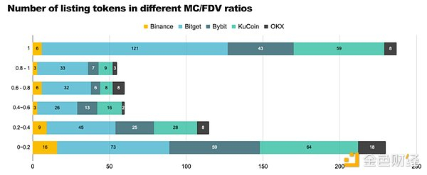 其余三家交易所上线代币的 FDV 较低,反映出其代币选择策略的多元化,也可能是由于币安和 OKX 在上线高 FDV 代币方面滞后。