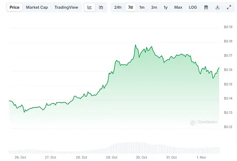 市值领先的 meme 币最近一直处于涨势领先地位,过去一周飙升了 17%。