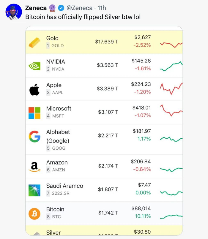 贝莱德BTC ETF 现已超过黄金 ETF和白银市值。