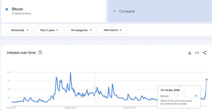 比特币的谷歌搜索趋势指数为“ 79 ”