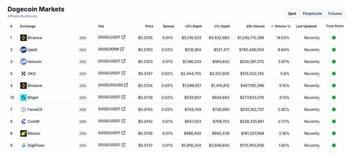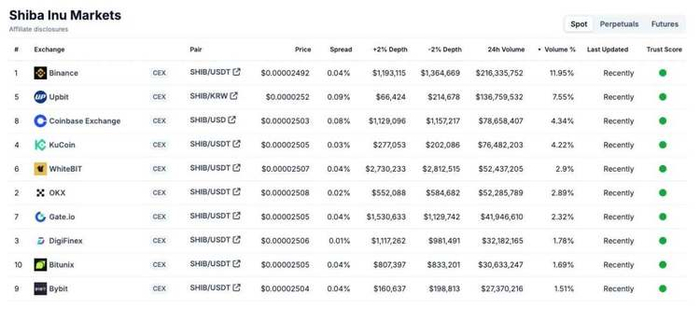 但是,当你看 $DOGE 和 $SHIB 时,Upbit 仍然是第二大现货市场。