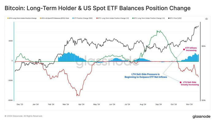 Crypto Banter 分析师 Kyledoops 也提到了同一项数据,其指出长期比特币持有者已抛售了 12.8 万枚 BTC ,虽然比特币现货 ETF 同期吸收了 90% 的抛售压力。
