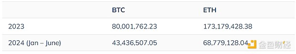 以下是 2023 年和 2024 年(截至 6 月)被报告为欺诈账户和诈骗的集群的总接收价值。