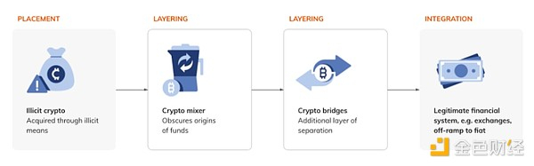 洗钱在链上获得的资金的过程通常很复杂,因为网络犯罪分子使用各种服务来掩盖资金的来源和动向。加密货币原生洗钱给加密货币服务和执法机构带来了持续的挑战。