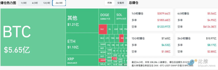 比推数据显示,在昨日触及近 10.4 万美元的历史新高后,比特币于北京时间 12 月 6 日 6: 30 AM 左右突发巨幅波动,在几分钟内迅速插针至 9.1 万美元附近,导致市场大规模爆仓。 数据显示,在过去 24 小时内,近 21 万投资者爆仓,总额超过 10 亿美元,多单为主。截至发稿时,BTC 价格回升至 9.7 万美元以上。此次插针并未波及其他山寨币。