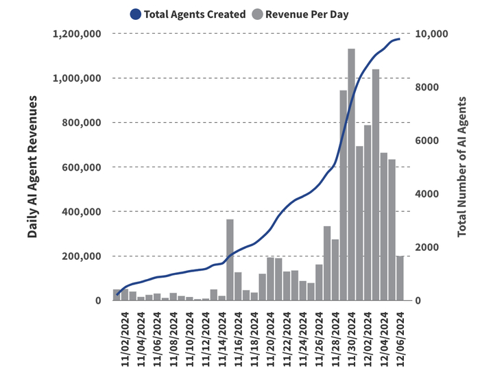 我们认为,AI 代理将在 2025 年成为推动大规模采用的最具吸引力的叙事之一。AI 代理是一种专门的 AI 机器人,旨在帮助用户实现特定目标,例如“最大化收益”或“提升 X/Twitter 的参与度”。这些代理能够自主调整策略来优化结果,通常基于特定领域的数据进行训练和专精化。